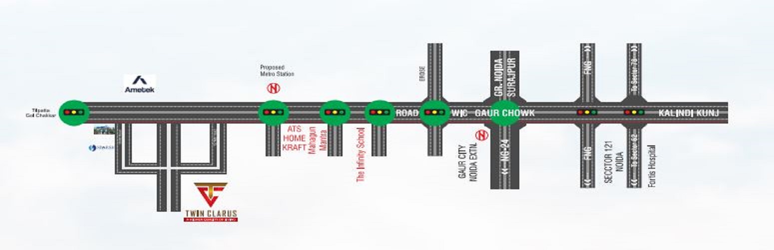 The location of project is main highlight because Twin Clarus are located at Noida Extension, NH-24, Ghaziabad (UP). It is just 15km away from national highway 24, which is soon to become 8 lain as construction is already started. Noida Extension itself is huge township and all projects had been delivered and every amenity are fully functional now.